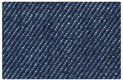 「デニム」生地は簡単に言うと厚手のコットン糸を使った織物のひとつです。たて糸にインディゴで染色した糸、よこ糸は白糸を使って綾織りをするのが一般的です。「デニム」生地の質感やイメージはもう説明不要ですね。