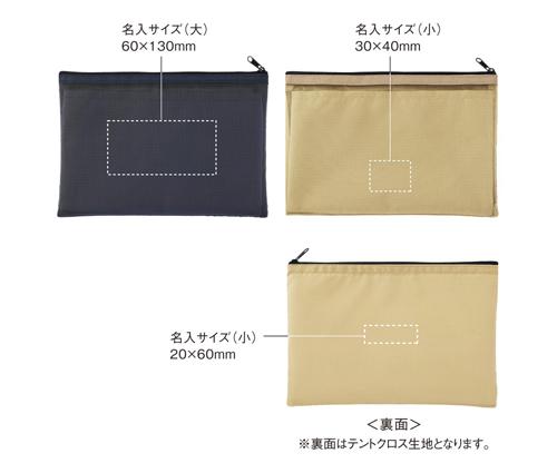 ブラックのセパレートメッシュポーチは、表面にメッシュ生地を使用し、裏面には撥水性・耐久性に優れたテントクロス生地を使用した二層構造になっています。