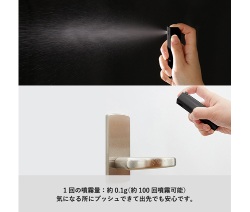 容量は10mlで、約100回の噴霧が可能となっていますので、お出かけ先での気になる場所に、いつでも手軽にスプレーできます。