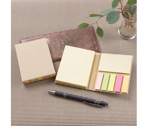 厚みのあるクラフト紙製表紙がついた、小さな本のような見た目の付箋セットです。