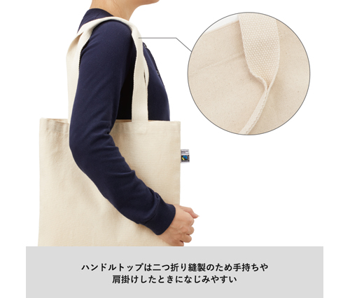 フェアトレードコットントート M ナチュラルは、フェアトレードオーガニックコットンを使用した、マチ付きでたっぷり収納できるトートバッグです。