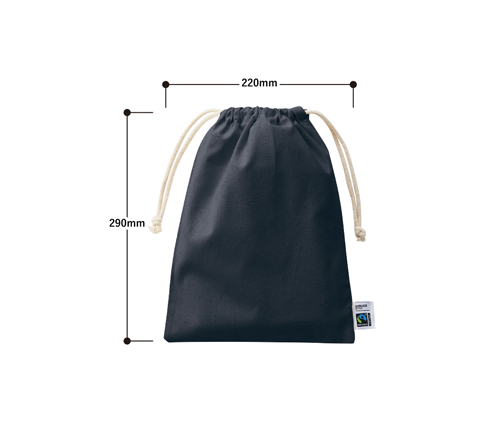 フェアトレードコットン巾着 M ナイトブラックは、生地、紐、すべての素材にフェアトレードコットンを使用したA4サイズ相当の巾着ポーチです。