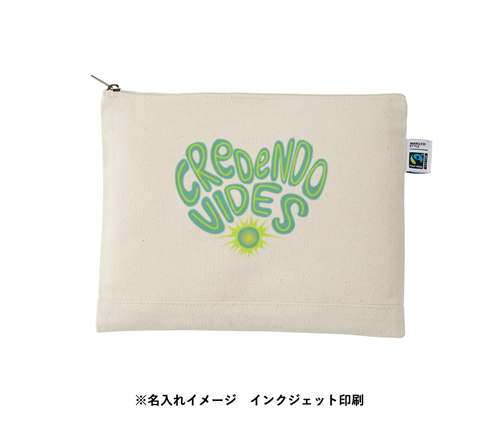 フェアトレードコットンキャンバスフラットポーチ L ナチュラル