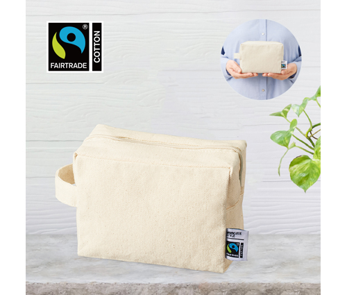 フェアトレードコットンキャンバスファスナーポーチ M ナチュラルは、フェアトレードオーガニックコットンを使用した、約150mm×約110mm×約80mmサイズのマチ付き長方形型ポーチです。