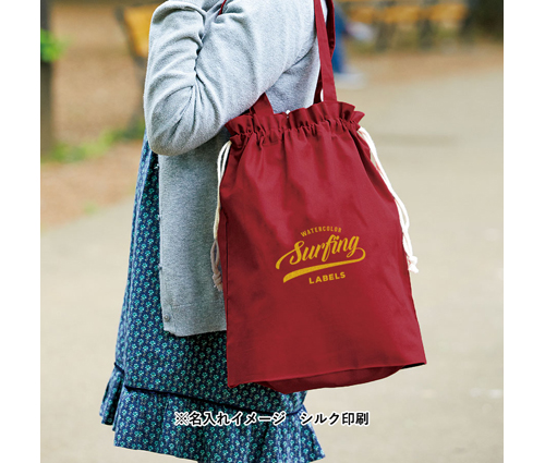 厚手コットンガゼット巾着トート(L) ワインレッド