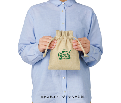 コットンリネン巾着(S)は、コットンとリネンを掛け合わせて作られたコンパクトサイズの巾着です。