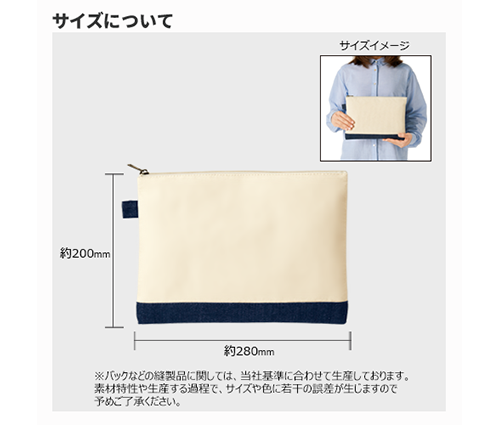 キャンバスデニムボトムフラットポーチ(M) ナチュラル×インディゴの基本情報