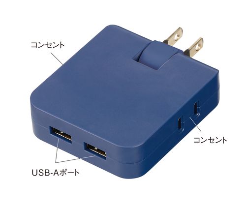 ホワイトのマルチアダプター(2AC+2USB)は、2つのコンセントと2つのUSBポートを持つアダプター。コンセントの合計最大出力は1400W、USBポートの合計最大出力は2.4Aです。プラグ部分を収納してコンパクトに持ち運びできるほか、変換アダプターもいりません。複数の端末を1度に充電できるため、旅行や出張などのとき重宝しそうです。