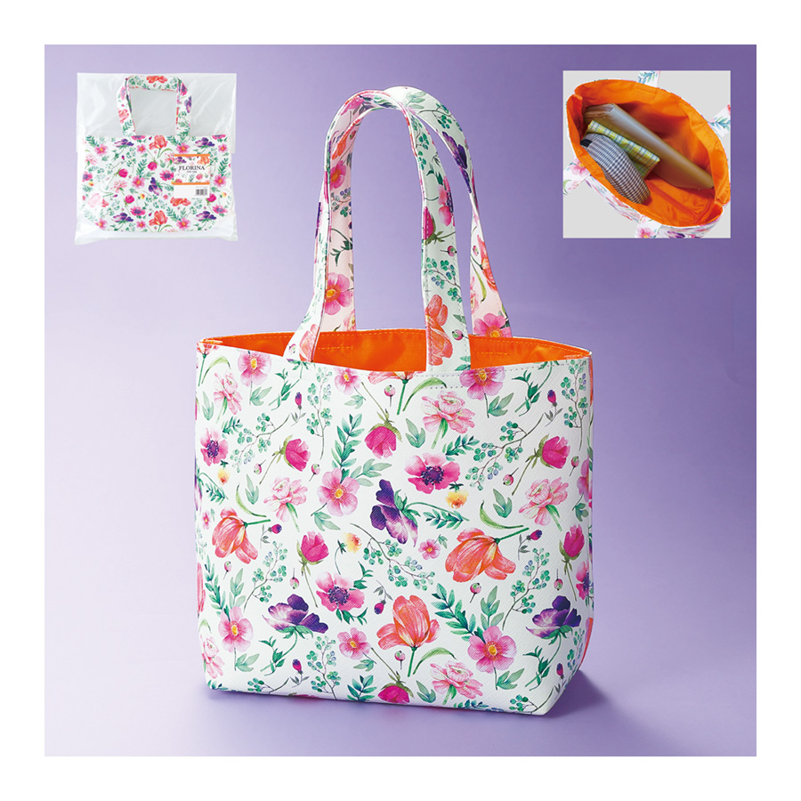 カラフル&エレガントな花柄に、中生地のオレンジ色がアクセントとなりおしゃれ。