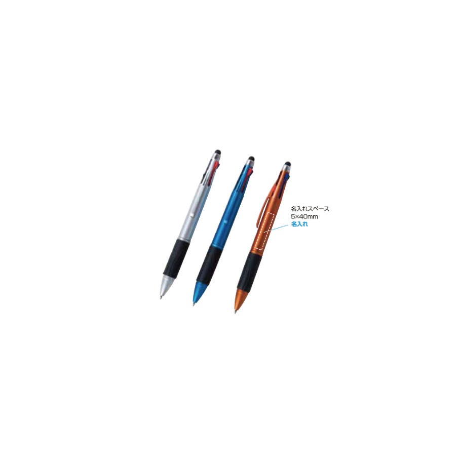 タッチペン付きのメタリックな4色ボールペン