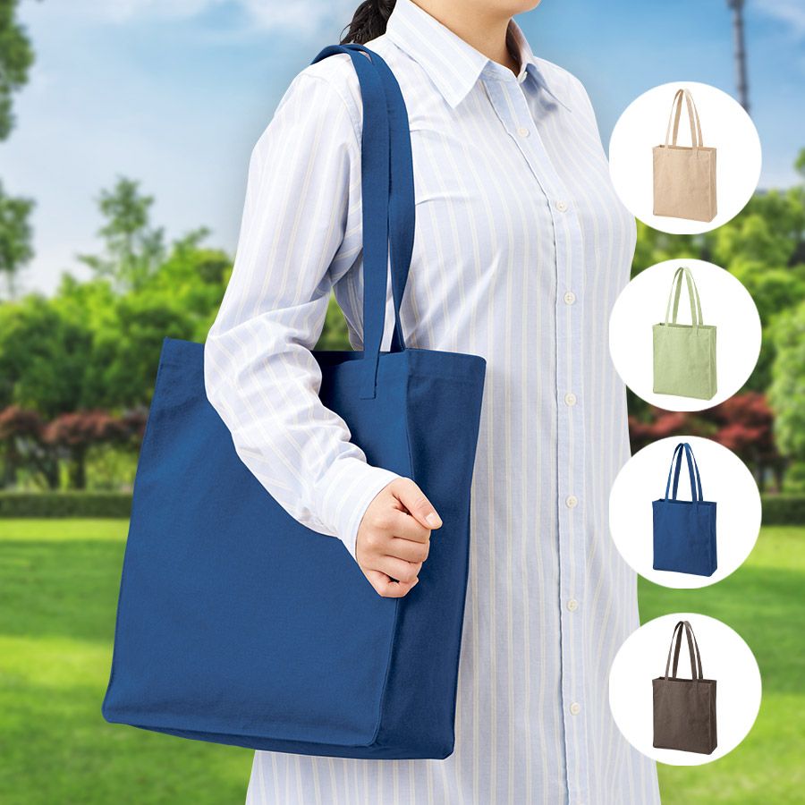 オリーブのライトウォッシュキャンバススクエアトートは、A4書類も余裕で収まるサイズ感に加え、横マチがあるので書類や冊子の持ち運びに最適のトートバッグです。軽くウォッシュ加工されたキャンバス地で、気軽に使えてオシャレ。13オンスの厚みがあるので、しっかりしていて重みのある荷物も安心です。持ち手が長めなので、男女問わず肩掛けできるのもポイントです。