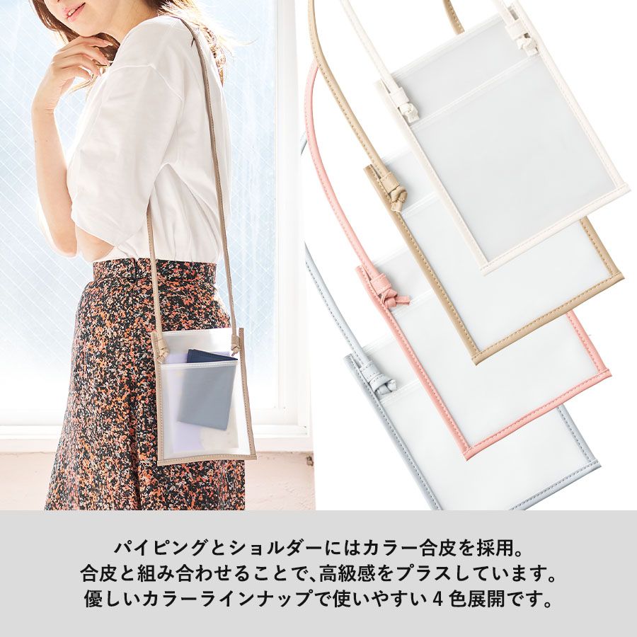 オフホワイトのEVAサコッシュは、ちょっとしたものを入れて持ち歩くのに便利なアイテムです。スマホやカギ、お財布を入れてちょっとしたお出かけやお散歩に最適です。また、オフィスやショップなら、メモ帳やお仕事ツールなどを入れて持ち歩けて便利。半透明なので中身が丸見えにならないところがポイントです。EVA素材は水や紫外線にも強く劣化しにくい素材なので、アウトドアシーンにも安心して持ち出せます。