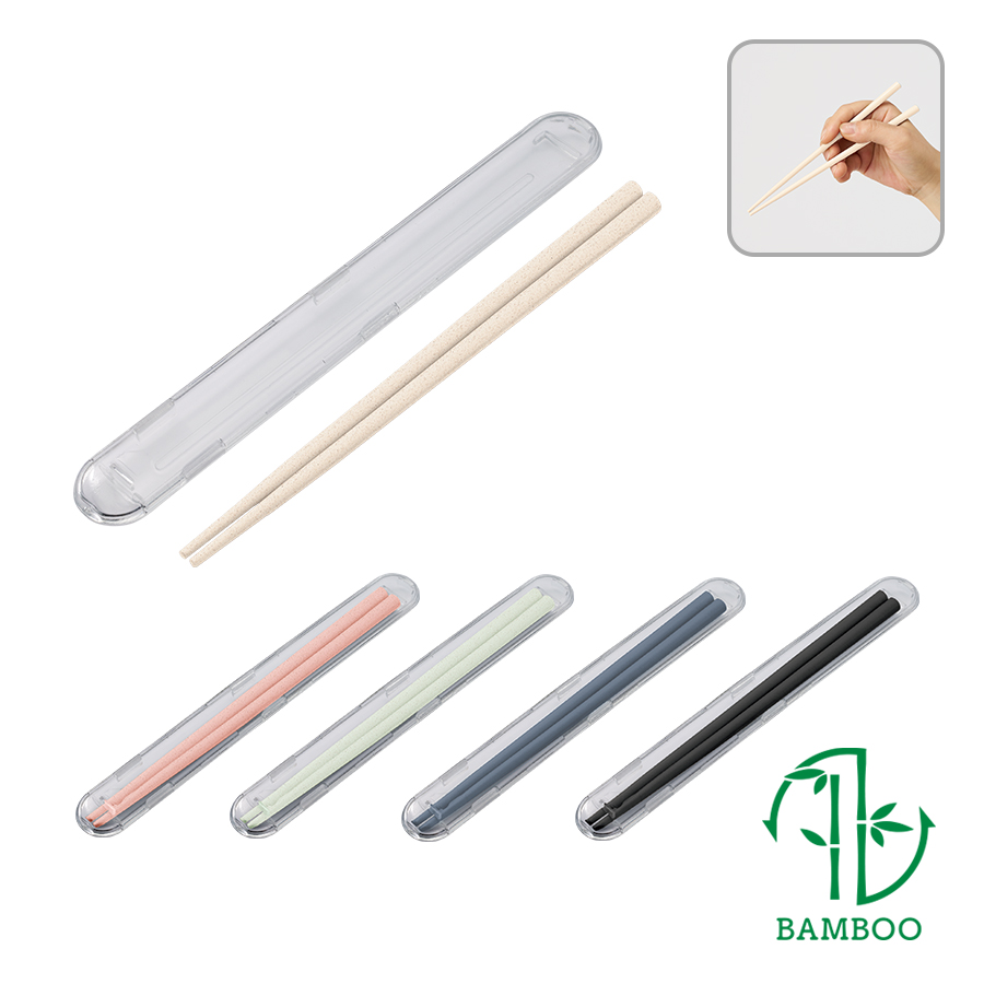 エコ箸フルケース(バンブーファイバー入タイプ) スモークピンクは、携帯に便利なクリアケース付きお箸。環境に優しいバンブーファイバー素材を使ったエコなアイテムです。