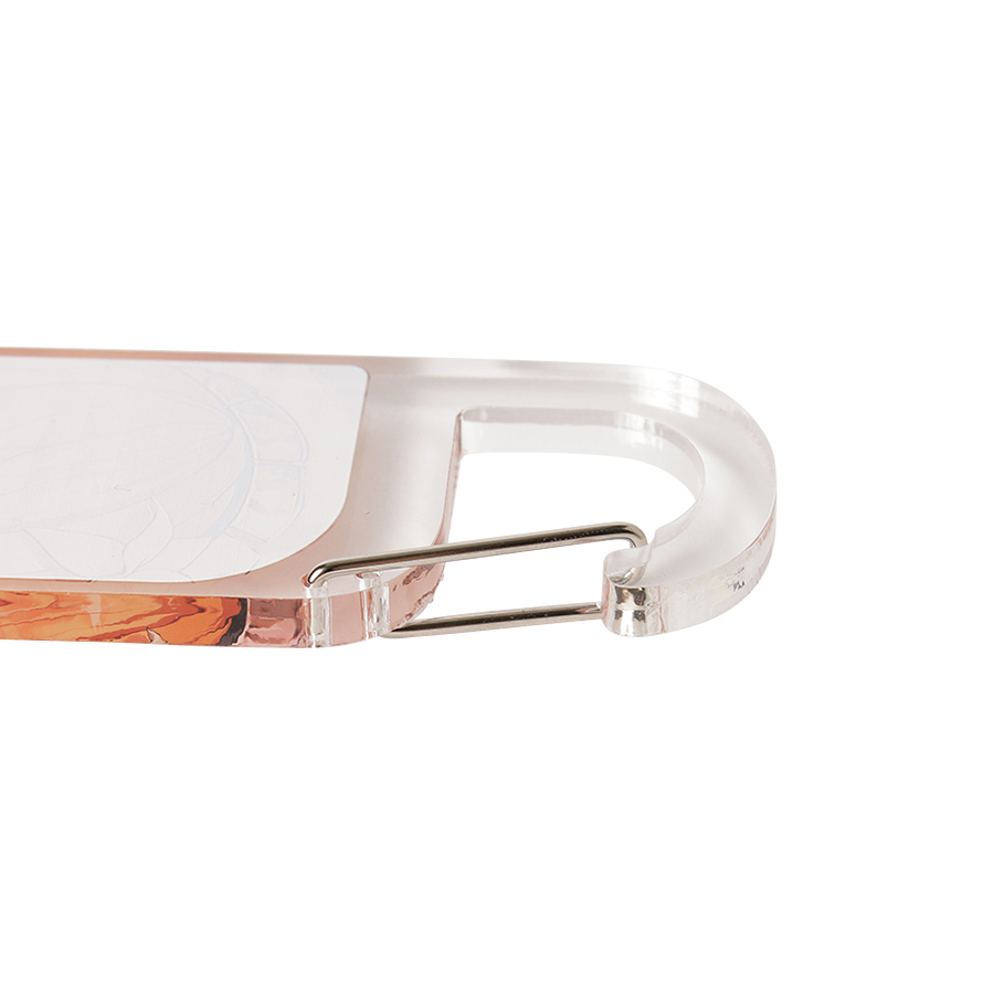 アクリルカラビナ は、アクリル素材を使用したクリアでおしゃれなカラビナです。カラビナとは、開閉できる部分のある金属リングのこと。ファッション性の高いアイテムで、登山用としてだけでなくキーホルダーとしてもお使いいただけます。縦長の丸みを帯びたデザイン、透明でイラストやロゴが映える仕様になっています。アクリル素材を使用しているので軽くて丈夫です。大きさは縦約120mm・横約42mm、厚みは約5mmあります。