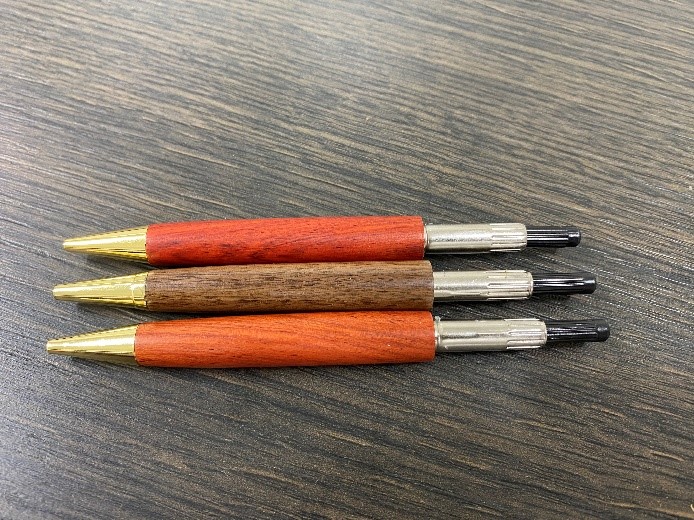 左からローズウッドボールペン⇒木製ボールペン(木箱付)⇒紫檀デスクセットの順です。