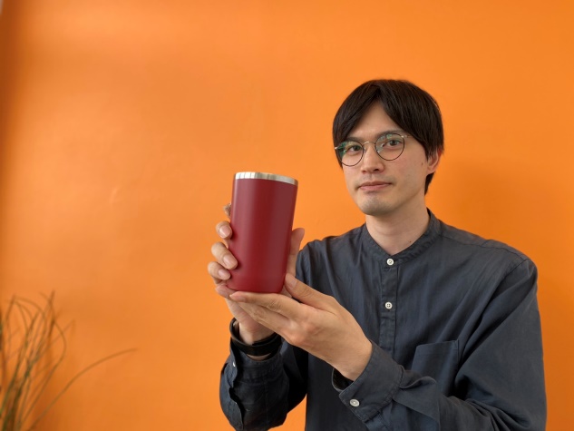 「ステンレスサーモタンブラー」は、ステンレスと樹脂を使った2重構造のタンブラーです。 保温・保冷効率も高く、90℃の飲料を入れた場合1時間後でも約63℃の保温効果があります(製造会社の試験結果)。 ホットコーヒーを入れて飲んでみると、確かに1時間くらいは十分に「ホット」として飲める印象でした。 また、上部にはシリコン製の黒いフタがついています。 フタは締まりやすく、ホコリも入りにくい構造です。 飲み物がこぼれにいため、オフィスはもちろんのこと、アウトドアでも安心してお使いいただけます。