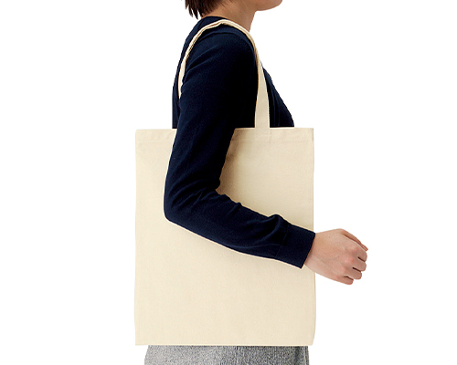 「ライトキャンバスバッグ(L)」は、ショッピングバッグとして使うのが一番おすすめです。 牛乳やペットボトルも入りますし、大根やゴボウなどの長い野菜も入れる事ができました。 丈夫なコットン素材が使われているので、ある程度なら重たい荷物を入れても破れる心配がありません。 学校や職場などのサブバッグとして活用していただくのも良いかと思います。 ノートやファイルなどの書類、着替え、マイボトル、タブレット端末などいろいろなものを持ち運ぶのに適しています。