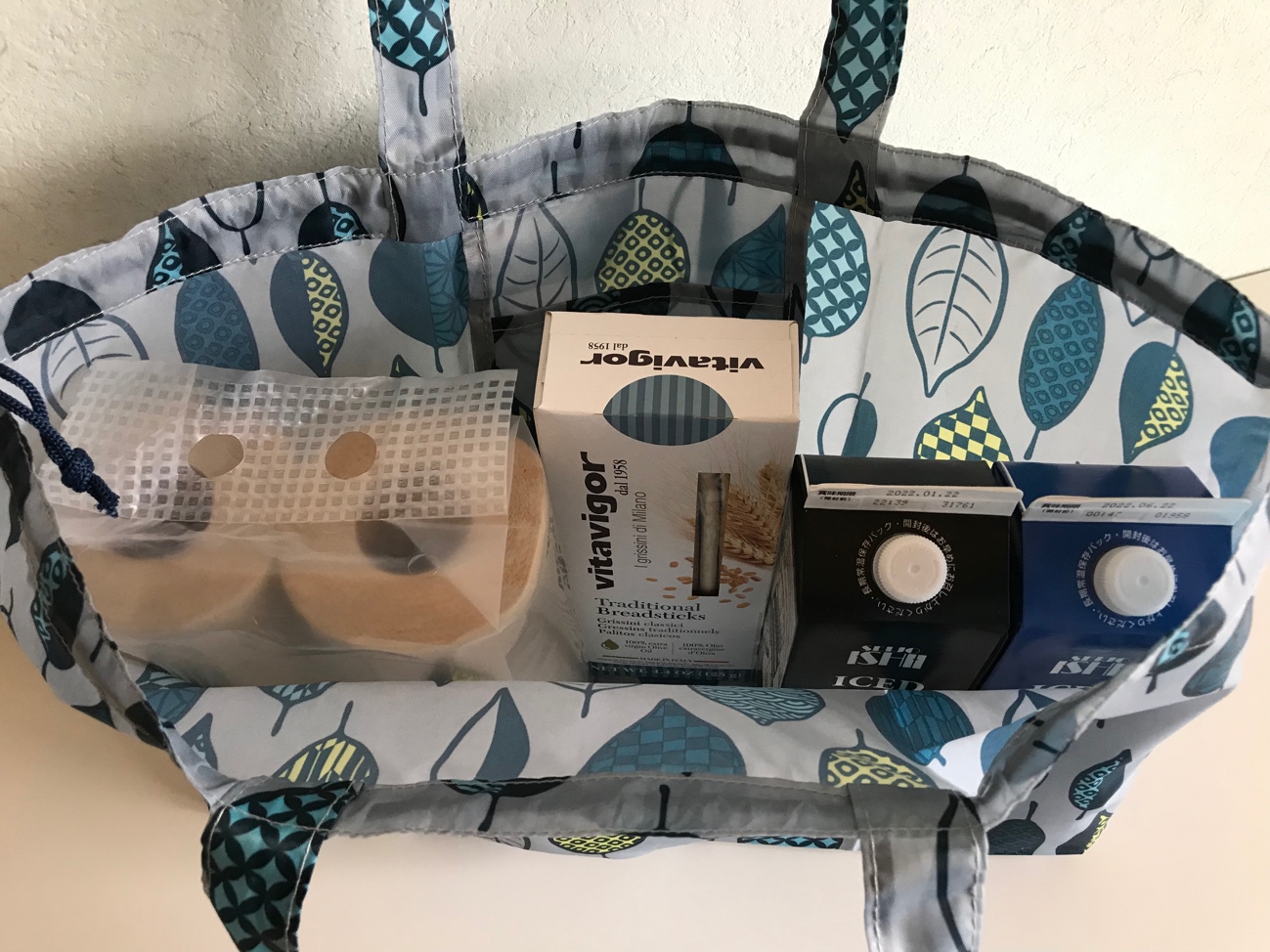 乾物や軽めの食品パッケージ、かさばるキッチンペーパーを入れるのにピッタリのバッグだと思います。